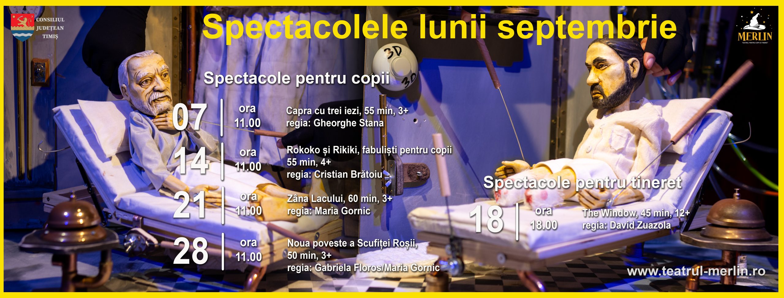 "Teatrul Pentru Copii și Tineret Merlin Timișoara (România) este o instituție publică de cultură, aflată în subordinea Consiliului Județean Timiș. Înființat în 1949, Teatrul Merlin este singurul teatru de păpuși cu personalitate juridică din vestul țării.